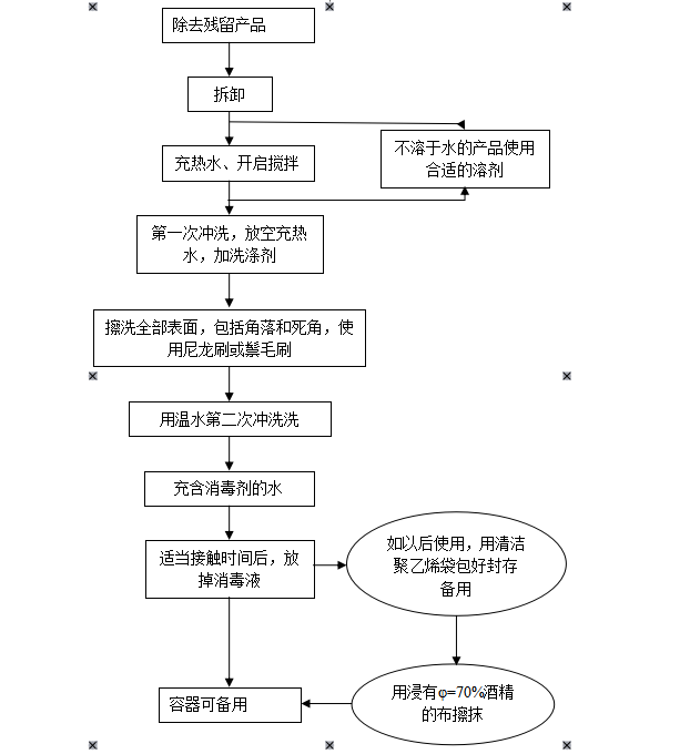 設備器具的清洗、消毒按照以下流程操作: